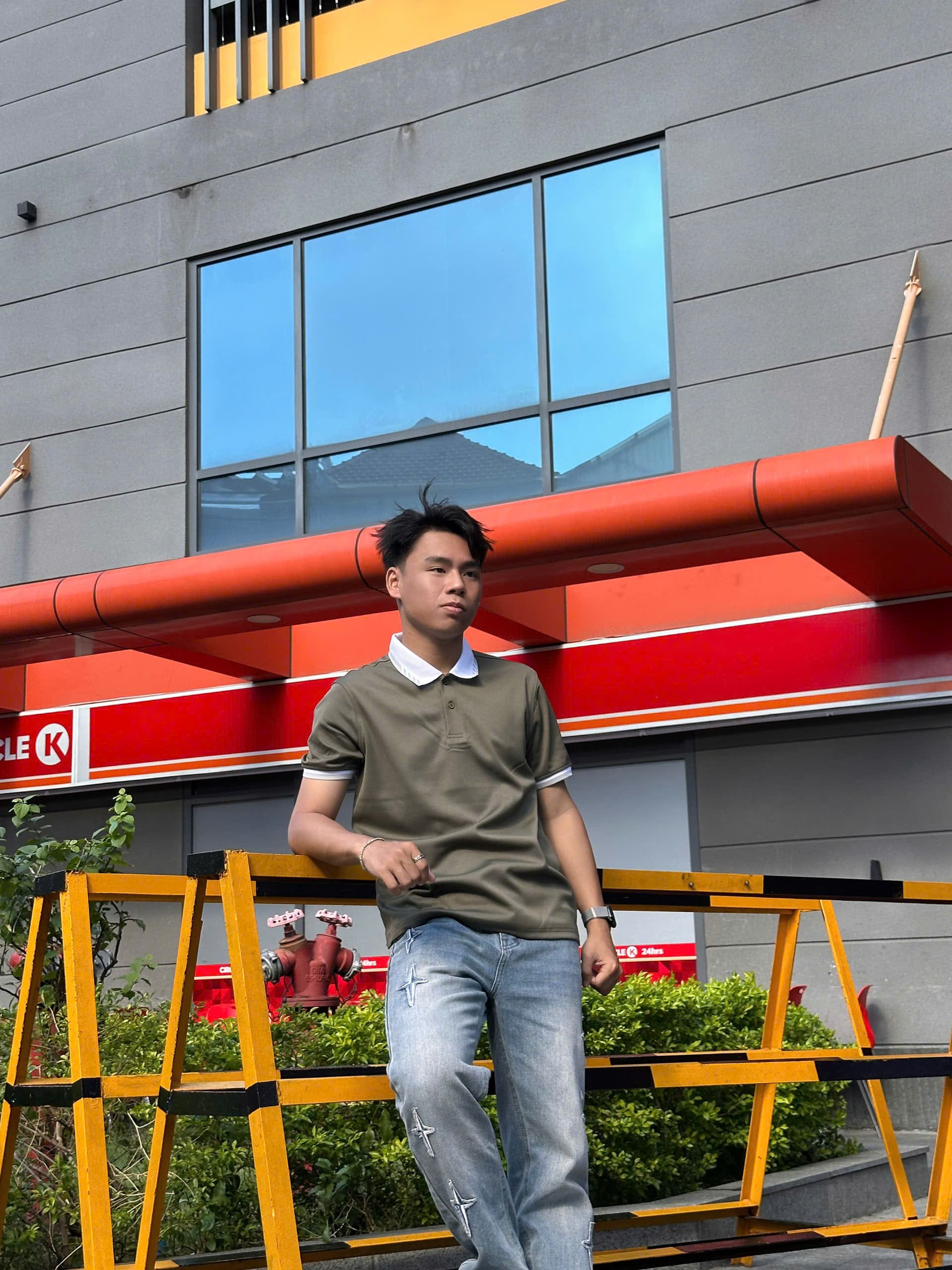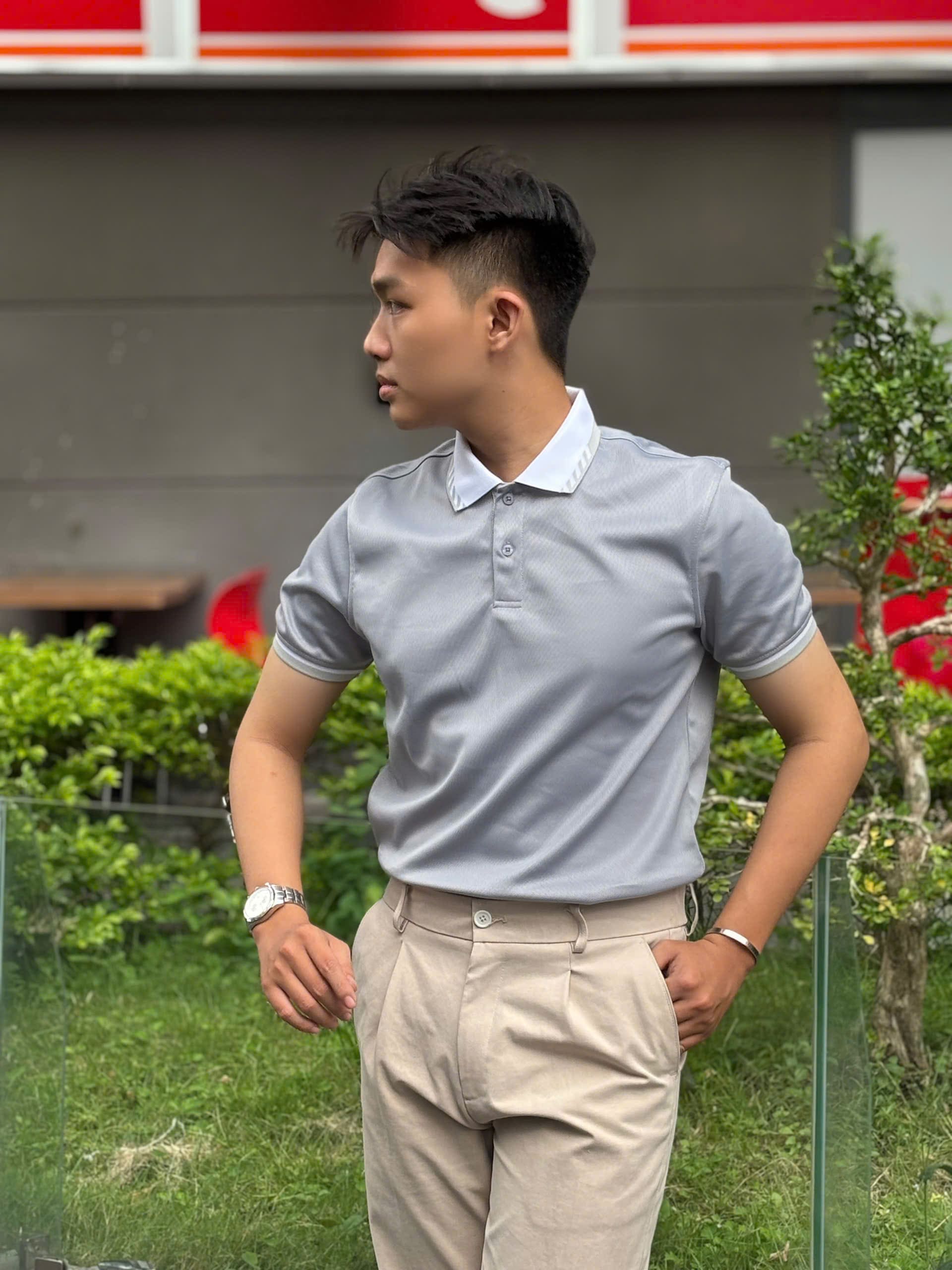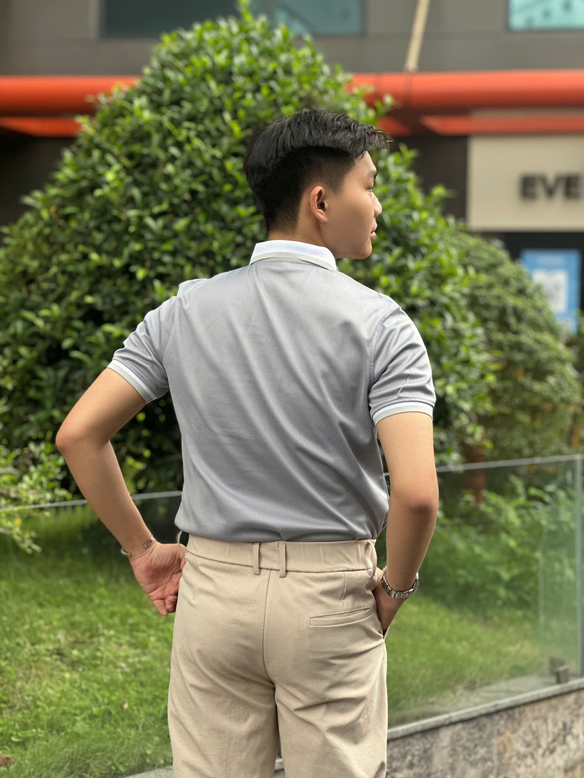 Điểm nhấn tinh tế: Thân áo màu xám ghi kết hợp cùng cổ áo và bo tay màu trắng, tạo nên sự tương phản trẻ trung nhưng vẫn giữ được nét lịch sự.