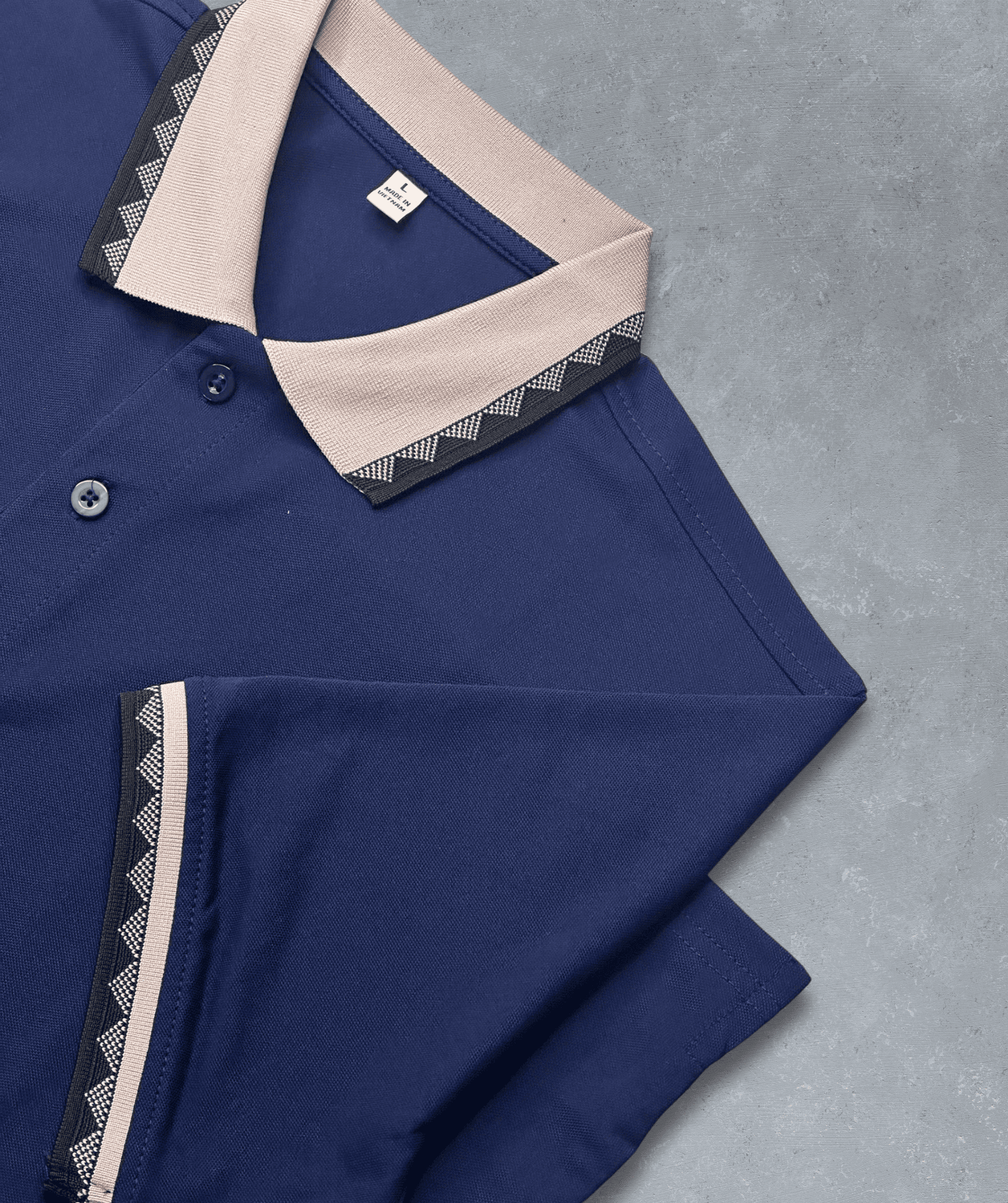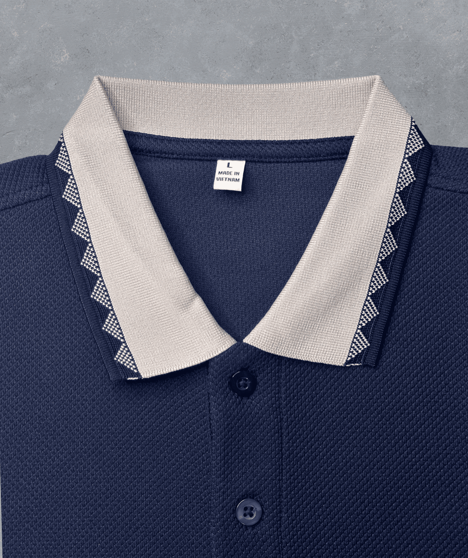 Mẫu áo Polo A02-284 là sự kết hợp hoàn hảo giữa nét cổ điển và hiện đại. Điểm nhấn ấn tượng nằm ở phần cổ áo và bo tay màu kem (beige) với họa tiết hình học răng cưa độc đáo, tạo nên sự khác biệt so với các mẫu áo polo trơn thông thường. Form dáng chuẩn, tôn dáng người mặc nhưng vẫn đảm bảo sự thoải mái tối đa trong mọi hoạt động.