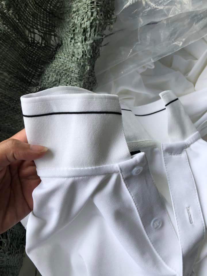 Mẫu áo A02-DP-1 được thiết kế dựa trên tiêu chí “Đơn giản là đỉnh cao”. Với nền vải màu trắng trang nhã, áo được tạo điểm nhấn bằng hai đường kẻ đen nhỏ chạy song song ở phần cổ và bo tay, mang lại vẻ ngoài trẻ trung nhưng vẫn rất lịch sự cho môi trường công sở.